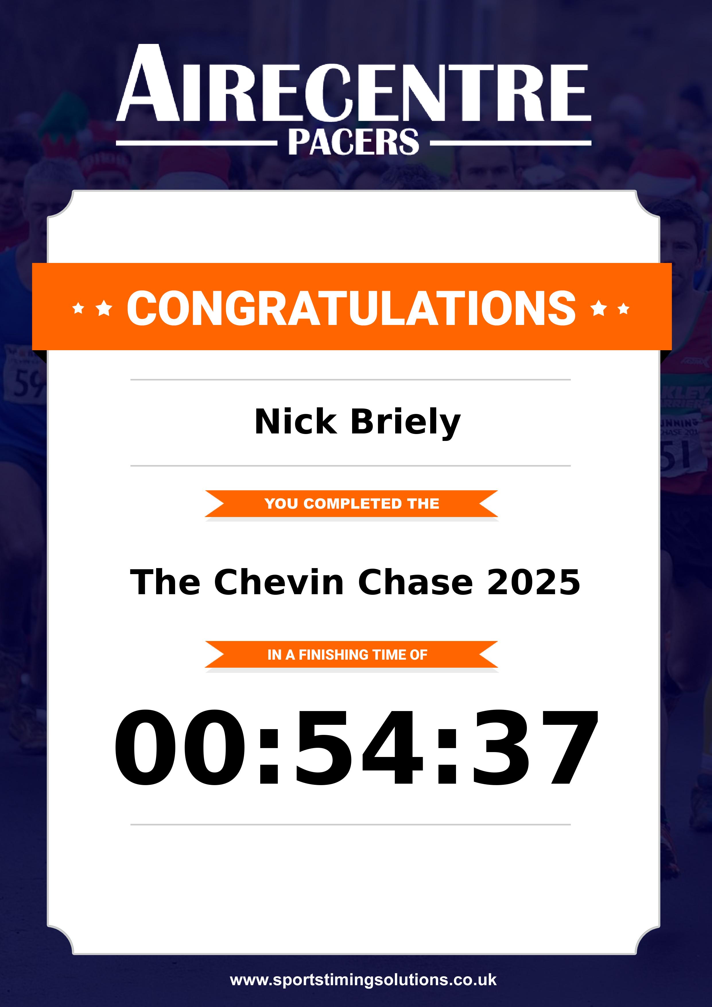 Congratulations Nick Briely after completing The Chevin Chase 2025 why not remember your accomplishment by purchasing our unique professionally printed, high quality 11oz race results mug. Keep that lasting memory forever. All of our race mugs mugs are personally designed and made to order and ready to deliver within 5–10 business days. Although our mugs are dishwasher safe the high temperatures of the dishwasher can fade the images. We advise handwashing only.Delivery is £3.50 Includes P&P. We only deliver within the UK
