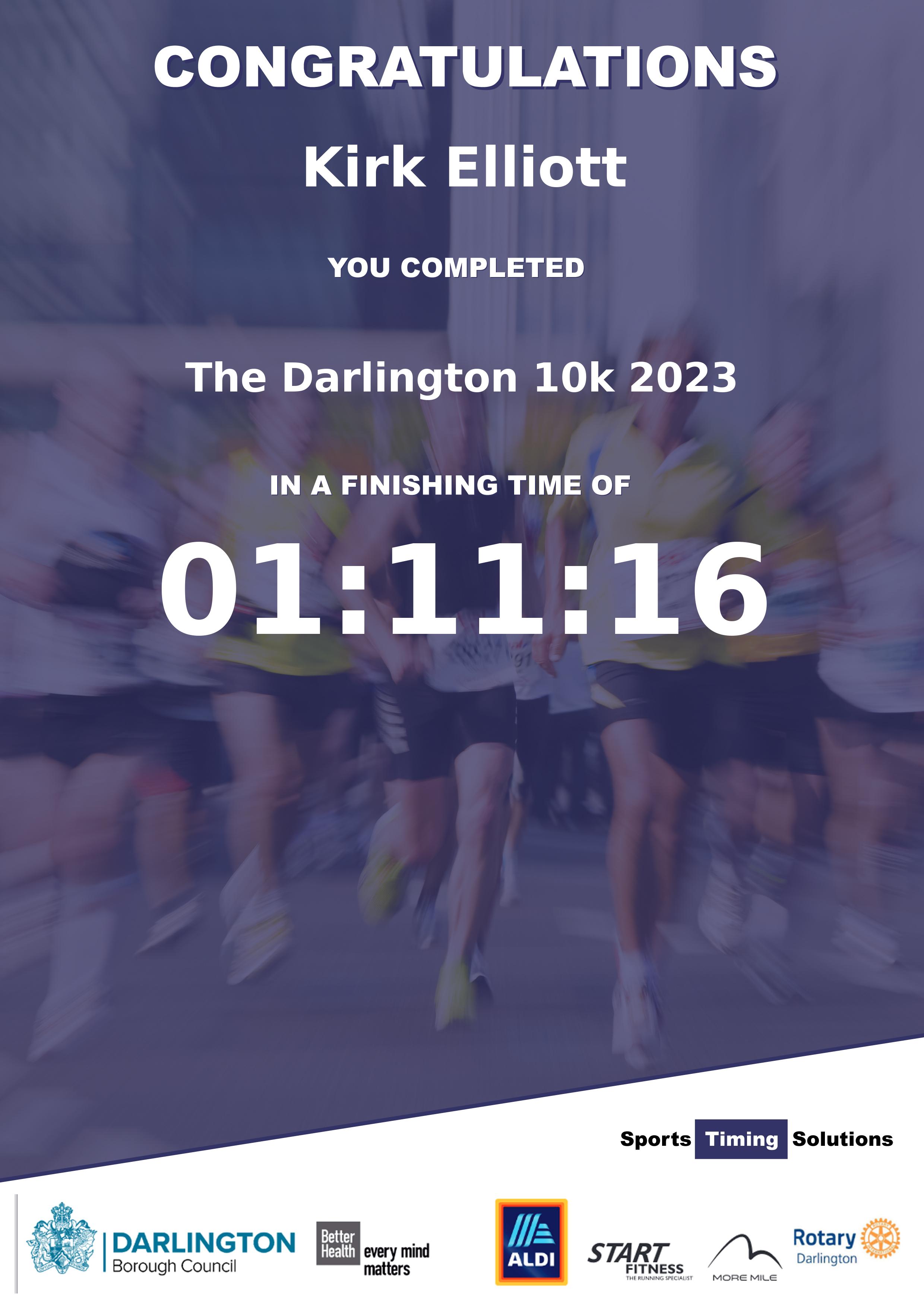 Congratulations Kirk Elliott after completing The Darlington 10k 2023 why not remember your accomplishment by purchasing our unique professionally printed, high quality 11oz race results mug. Keep that lasting memory forever. All of our race mugs mugs are personally designed and made to order and ready to deliver within 5–10 business days. Although our mugs are dishwasher safe the high temperatures of the dishwasher can fade the images. We advise handwashing only.Delivery is £3.50 Includes P&P. We only deliver within the UK