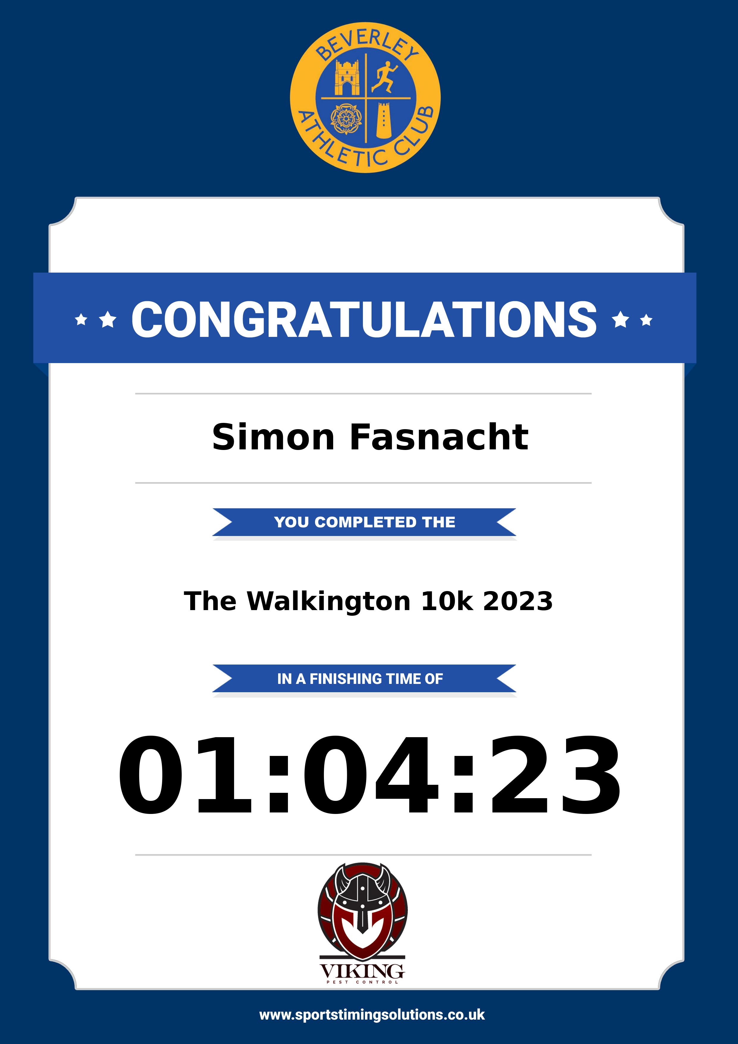 Congratulations Simon Fasnacht after completing The Walkington 10k 2023 why not remember your accomplishment by purchasing our unique professionally printed, high quality 11oz race results mug. Keep that lasting memory forever. All of our race mugs mugs are personally designed and made to order and ready to deliver within 5–10 business days. Although our mugs are dishwasher safe the high temperatures of the dishwasher can fade the images. We advise handwashing only.Delivery is £3.50 Includes P&P. We only deliver within the UK