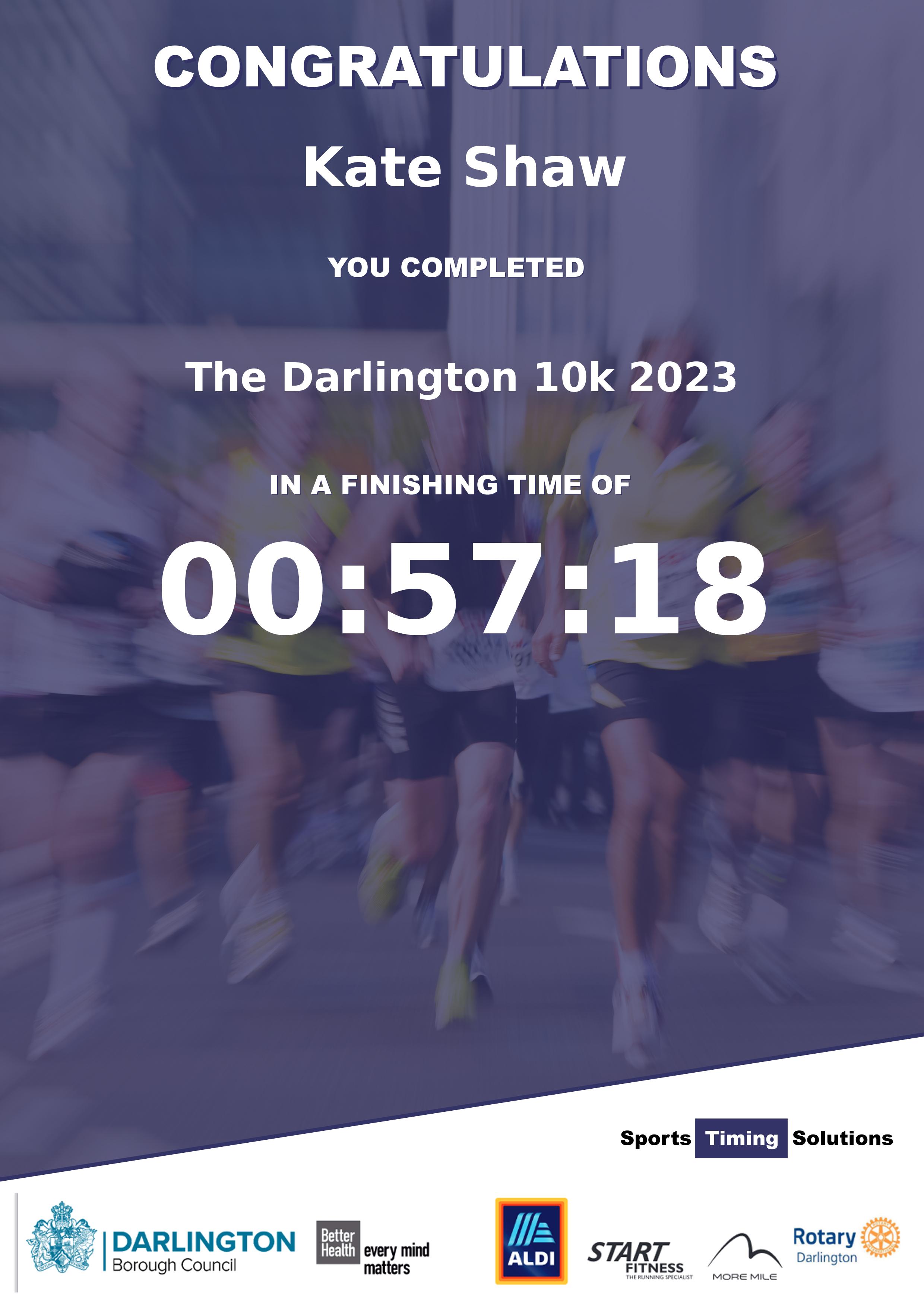 Congratulations Kate Shaw after completing The Darlington 10k 2023 why not remember your accomplishment by purchasing our unique professionally printed, high quality 11oz race results mug. Keep that lasting memory forever. All of our race mugs mugs are personally designed and made to order and ready to deliver within 5–10 business days. Although our mugs are dishwasher safe the high temperatures of the dishwasher can fade the images. We advise handwashing only.Delivery is £3.50 Includes P&P. We only deliver within the UK