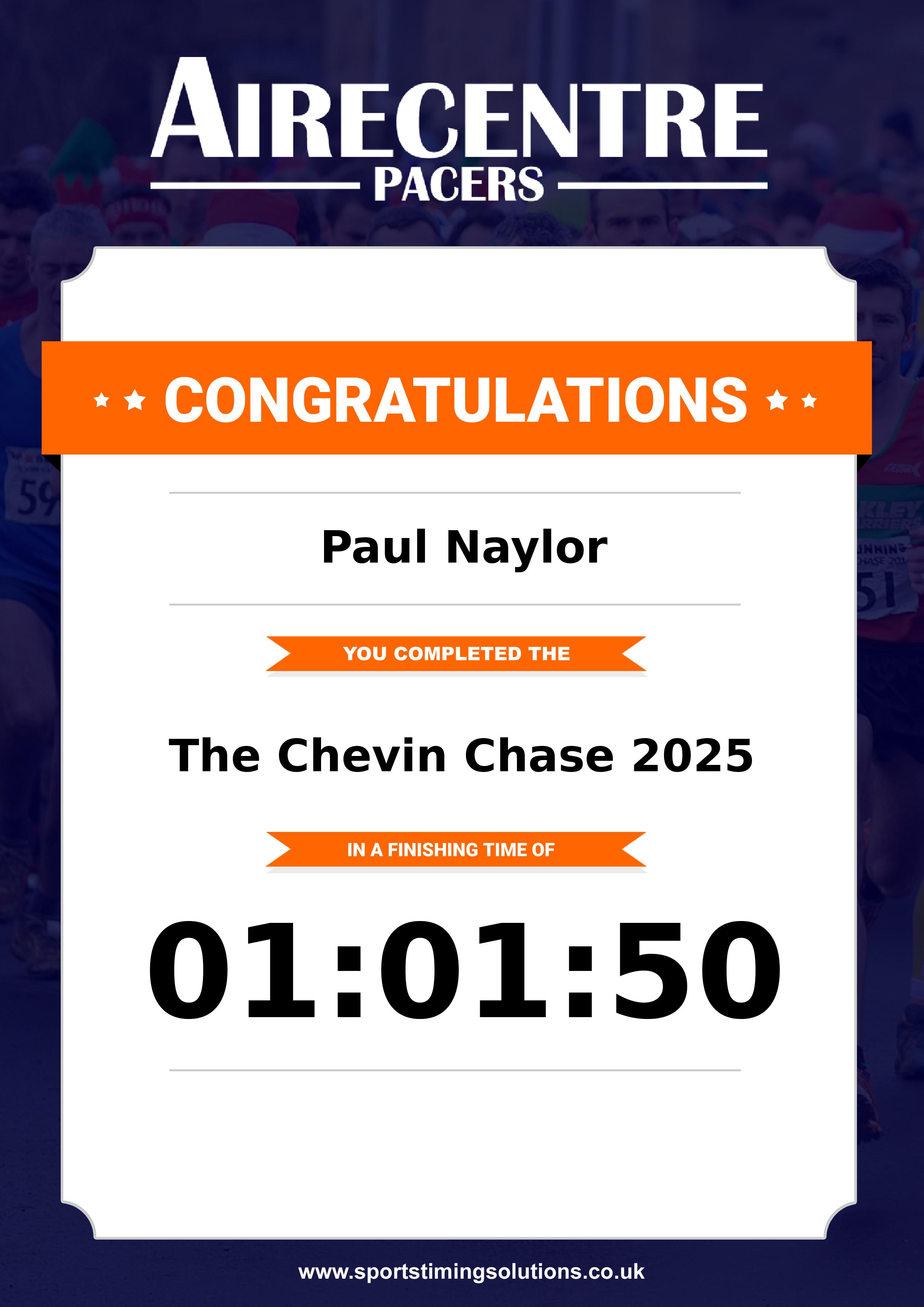 Congratulations Paul Naylor after completing The Chevin Chase 2025 why not remember your accomplishment by purchasing our unique professionally printed, high quality 11oz race results mug. Keep that lasting memory forever. All of our race mugs mugs are personally designed and made to order and ready to deliver within 5–10 business days. Although our mugs are dishwasher safe the high temperatures of the dishwasher can fade the images. We advise handwashing only.Delivery is £3.50 Includes P&P. We only deliver within the UK