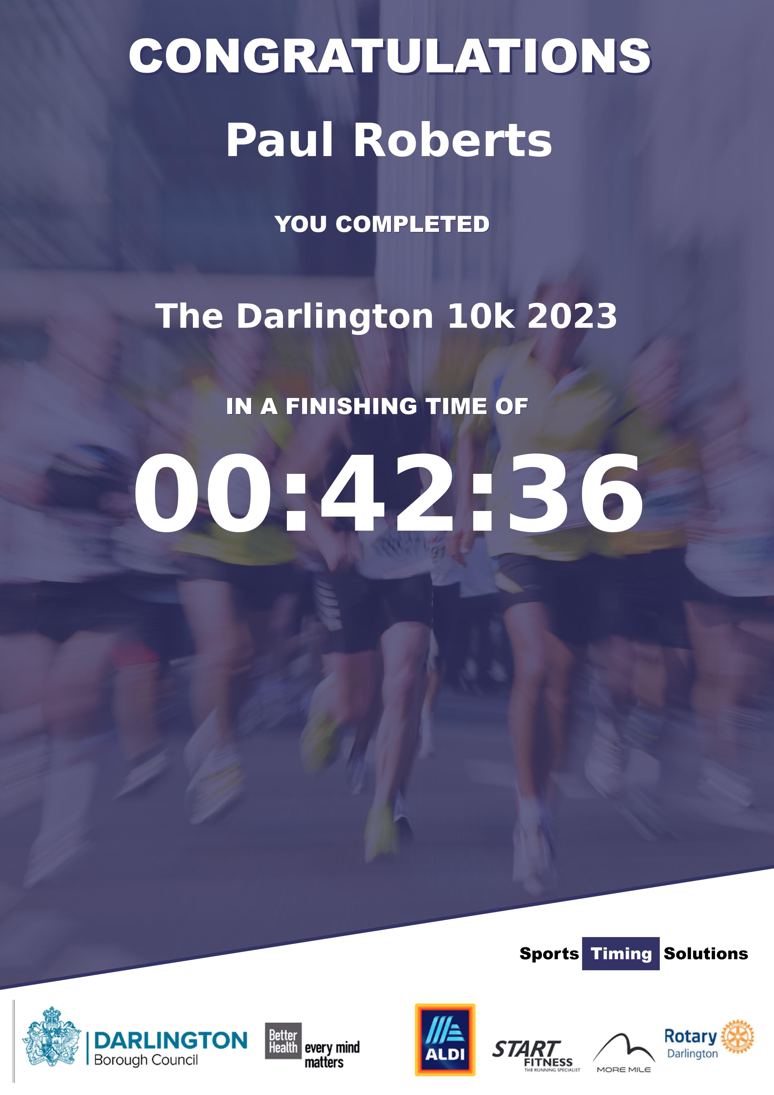 Congratulations Paul Roberts after completing The Darlington 10k 2023 why not remember your accomplishment by purchasing our unique professionally printed, high quality 11oz race results mug. Keep that lasting memory forever. All of our race mugs mugs are personally designed and made to order and ready to deliver within 5–10 business days. Although our mugs are dishwasher safe the high temperatures of the dishwasher can fade the images. We advise handwashing only.Delivery is £3.50 Includes P&P. We only deliver within the UK