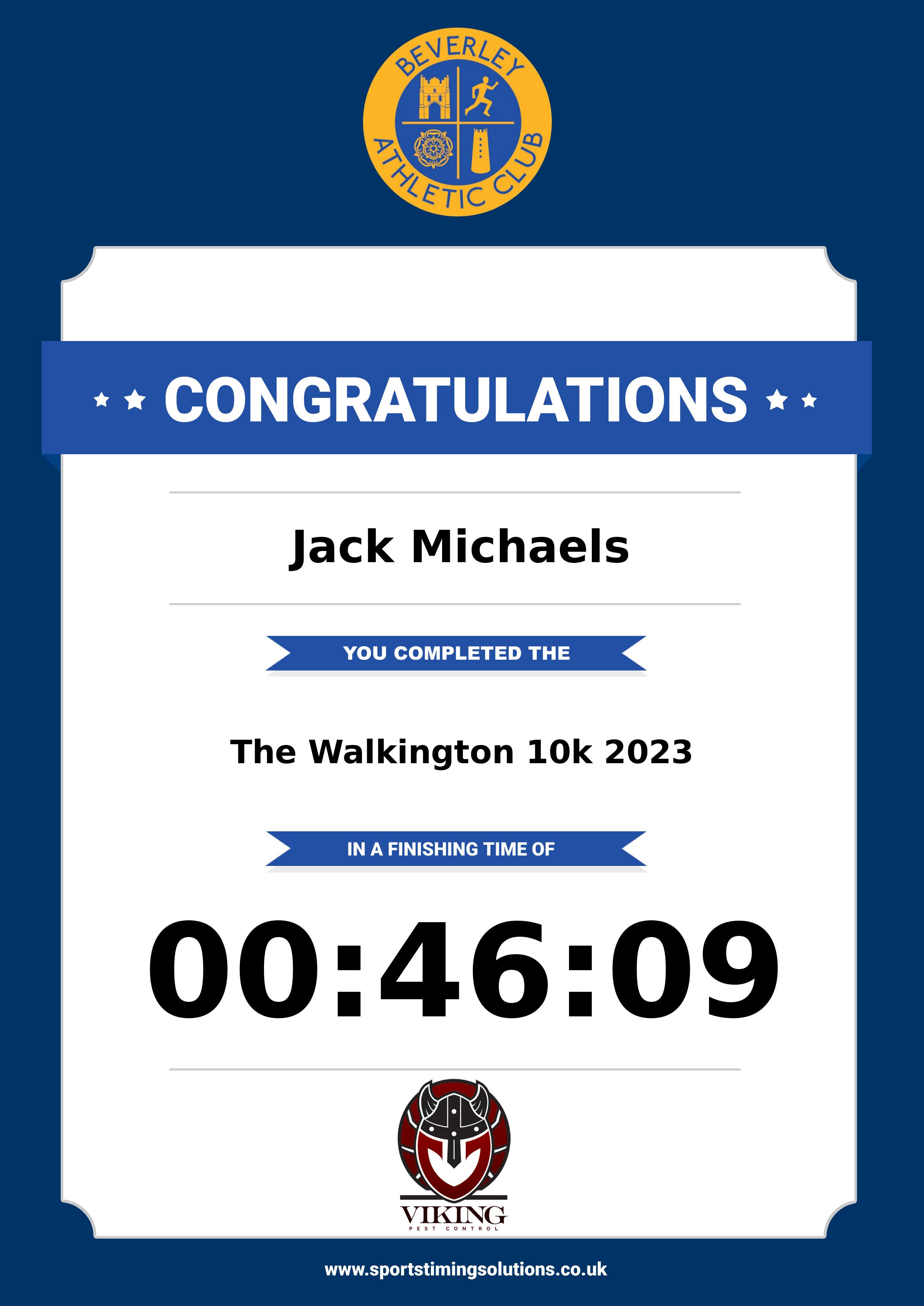 Congratulations Jack Michaels after completing The Walkington 10k 2023 why not remember your accomplishment by purchasing our unique professionally printed, high quality 11oz race results mug. Keep that lasting memory forever. All of our race mugs mugs are personally designed and made to order and ready to deliver within 5–10 business days. Although our mugs are dishwasher safe the high temperatures of the dishwasher can fade the images. We advise handwashing only.Delivery is £3.50 Includes P&P. We only deliver within the UK