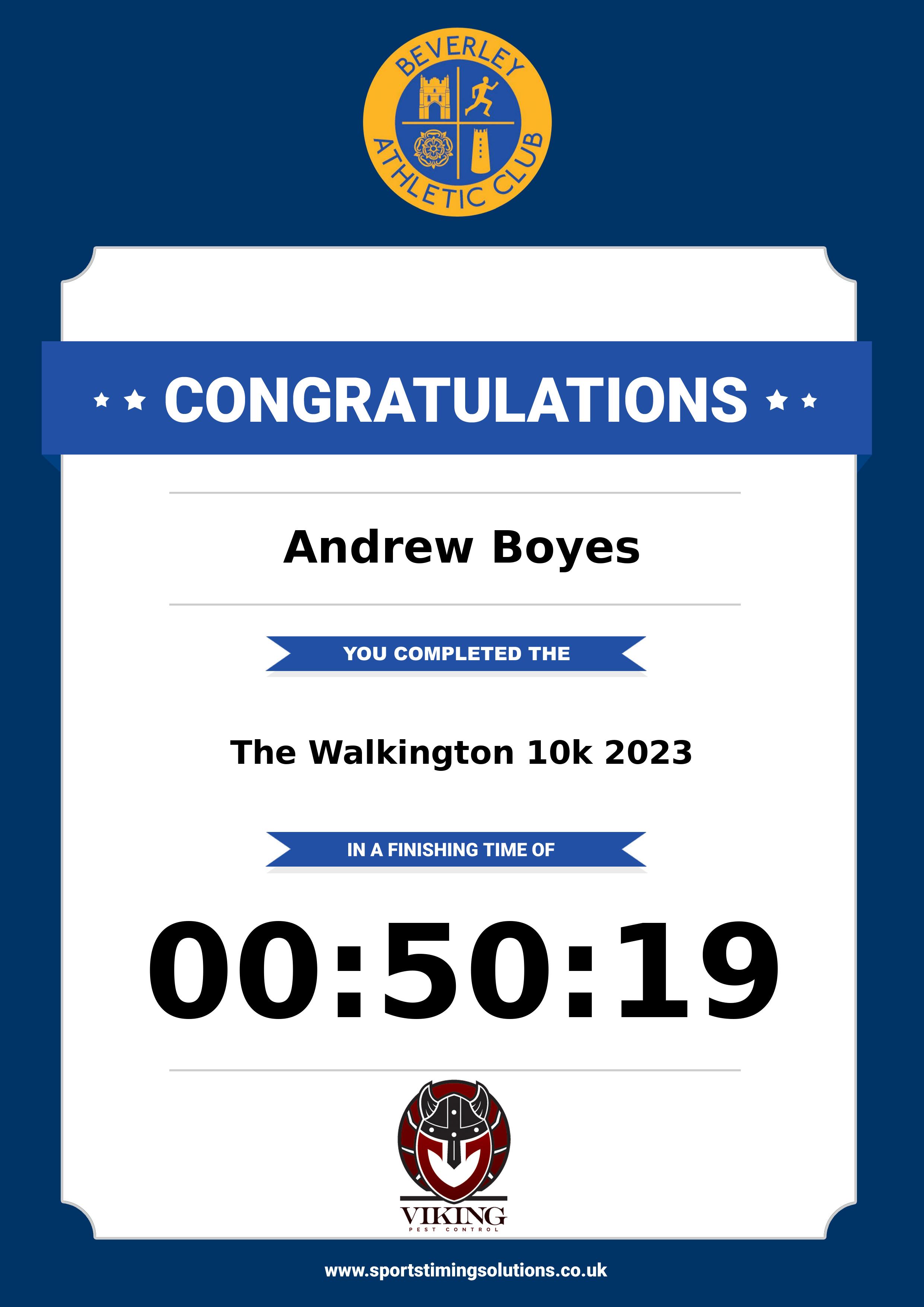 Congratulations Andrew Boyes after completing The Walkington 10k 2023 why not remember your accomplishment by purchasing our unique professionally printed, high quality 11oz race results mug. Keep that lasting memory forever. All of our race mugs mugs are personally designed and made to order and ready to deliver within 5–10 business days. Although our mugs are dishwasher safe the high temperatures of the dishwasher can fade the images. We advise handwashing only.Delivery is £3.50 Includes P&P. We only deliver within the UK