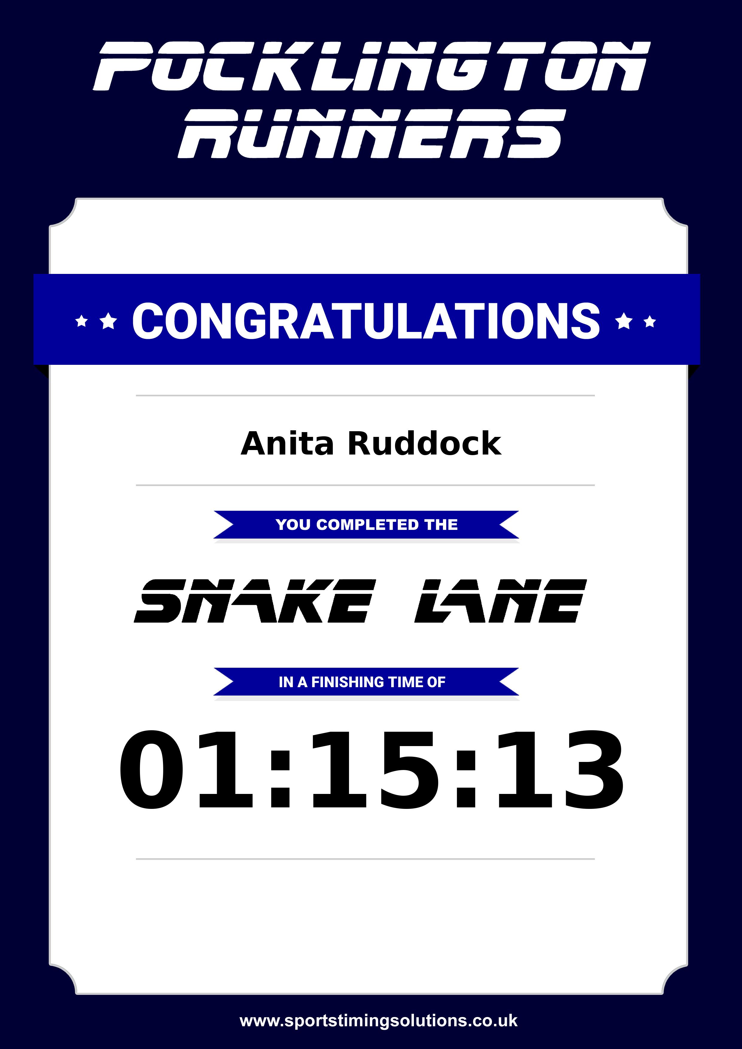 Congratulations Anita Ruddock Why not mark the moment with a personalised Race Mug a lasting reminder of your success. Available at the bottom of the page.