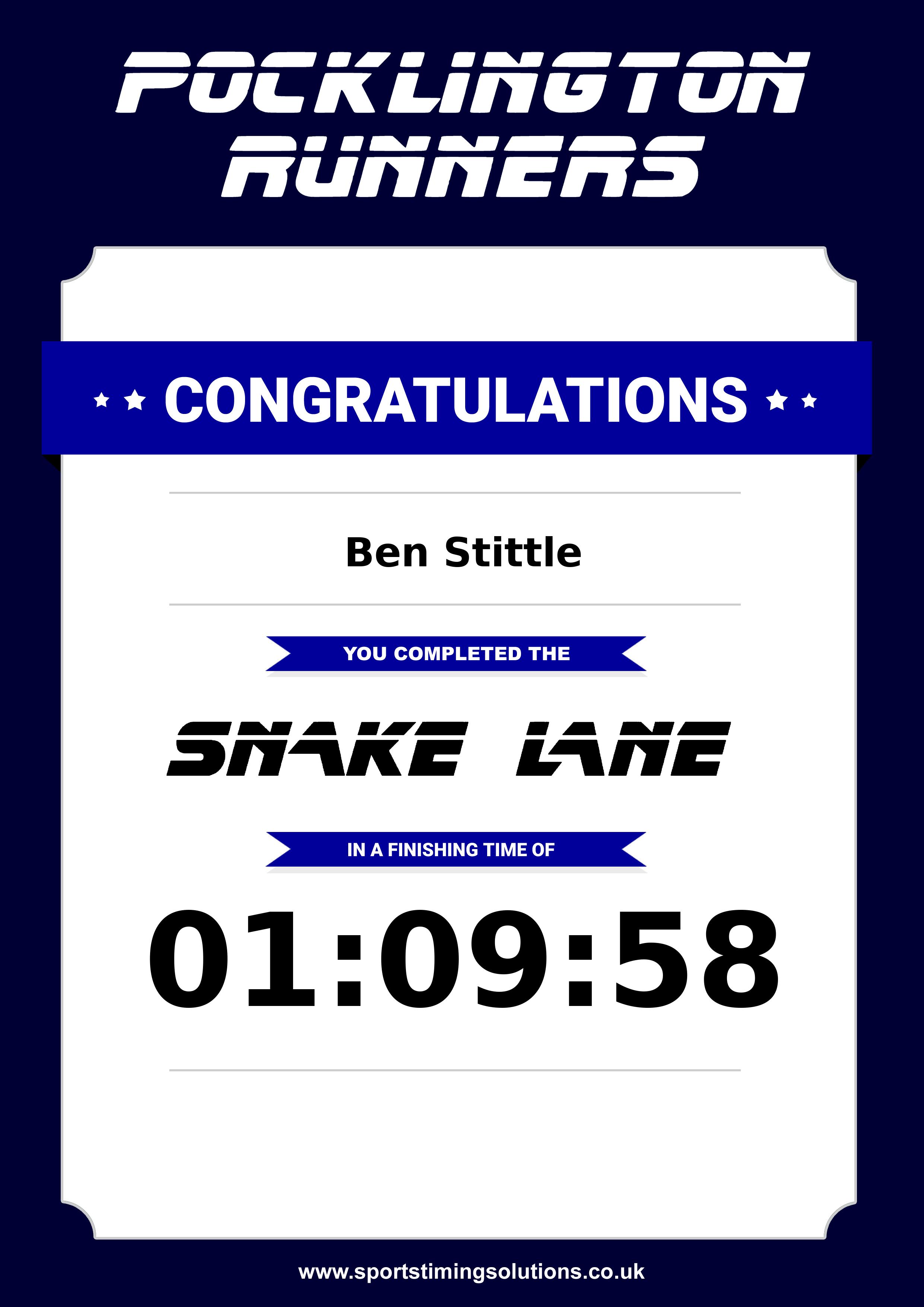 Congratulations Ben Stittle after completing The Snake Lane 2024 why not remember your accomplishment by purchasing a professionally printed, high quality 11oz mug. Keep that lasting memory forever. All of our mugs are personally designed and made to order and ready to deliver within 5–7 business days. Although our mugs are dishwasher safe the high temperatures of the dishwasher can fade the images. We advise handwashing only.Delivery is £3.50 We only deliver within the UK