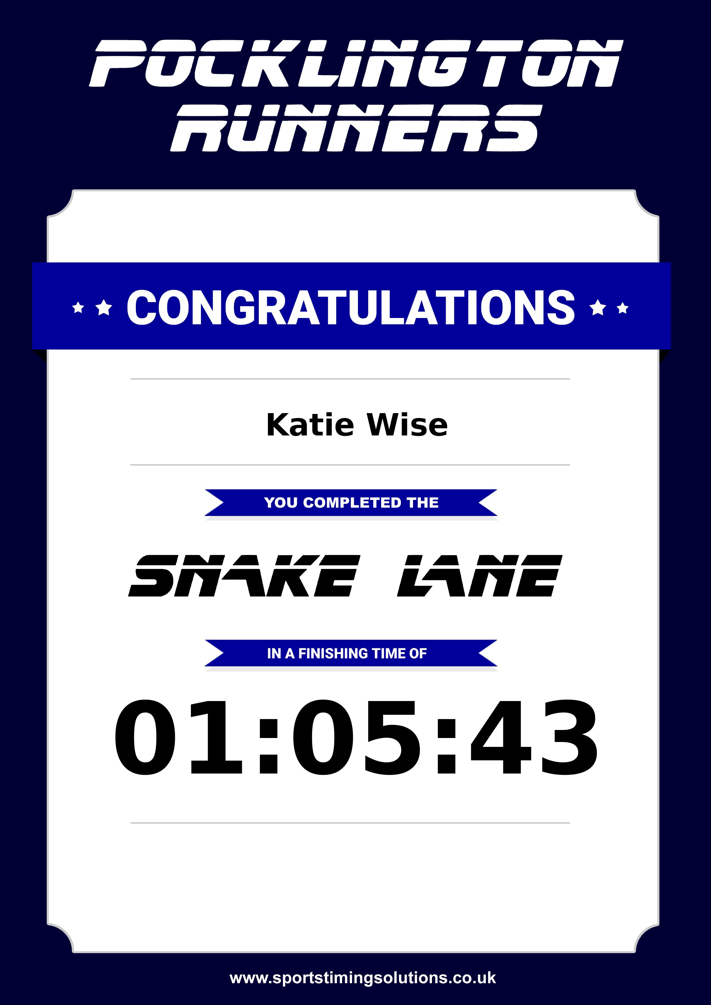 Congratulations Katie Wise Why not mark the moment with a personalised Race Mug a lasting reminder of your success. Available at the bottom of the page.