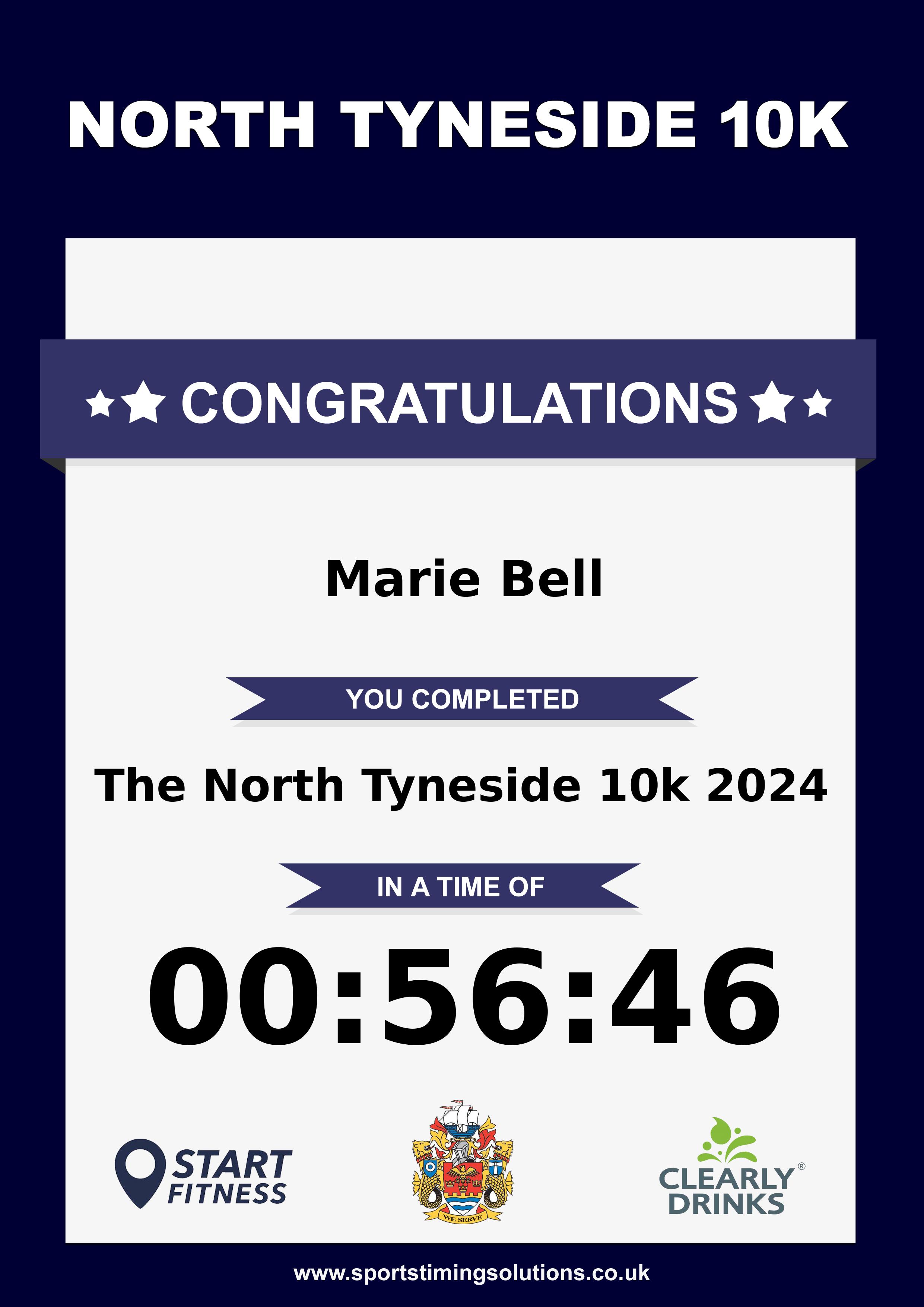 Congratulations Marie Bell after completing The North Tyneside 10k 2024 why not remember your accomplishment by purchasing a professionally printed, high quality 11oz mug. Keep that lasting memory forever. All of our mugs are personally designed and made to order and ready to deliver within 5–7 business days. Although our mugs are dishwasher safe the high temperatures of the dishwasher can fade the images. We advise handwashing only.Delivery is £3.50 We only deliver within the UK