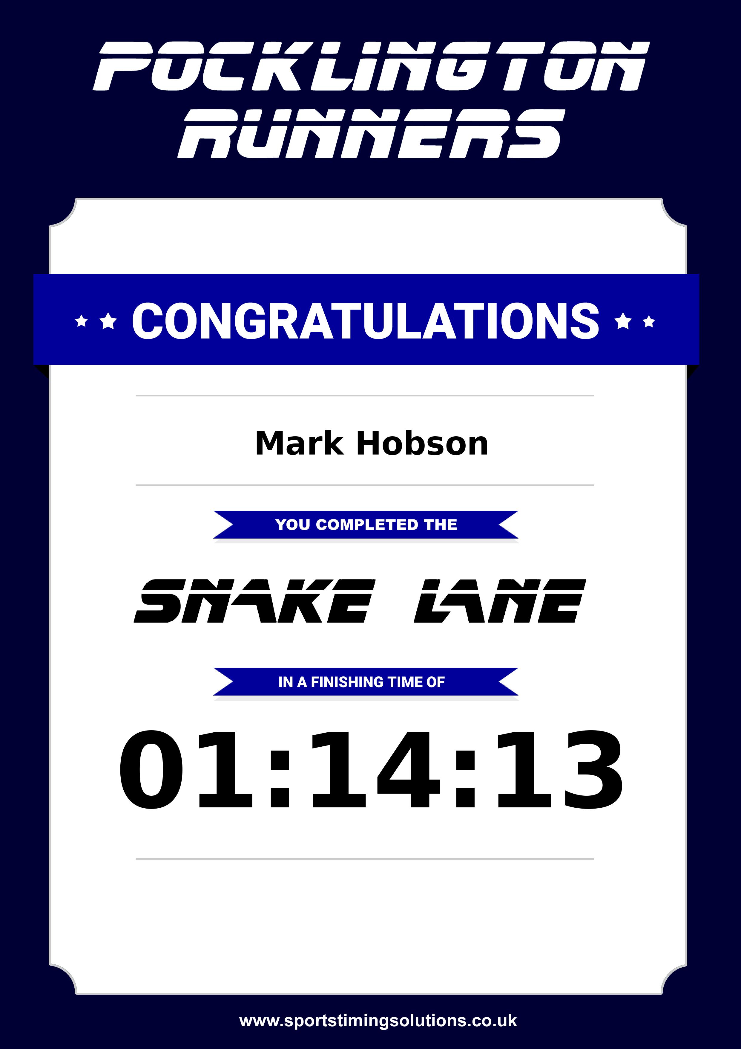Congratulations Mark Hobson after completing The Snake Lane 2024 why not remember your accomplishment by purchasing a professionally printed, high quality 11oz mug. Keep that lasting memory forever. All of our mugs are personally designed and made to order and ready to deliver within 5–7 business days. Although our mugs are dishwasher safe the high temperatures of the dishwasher can fade the images. We advise handwashing only.Delivery is £3.50 We only deliver within the UK
