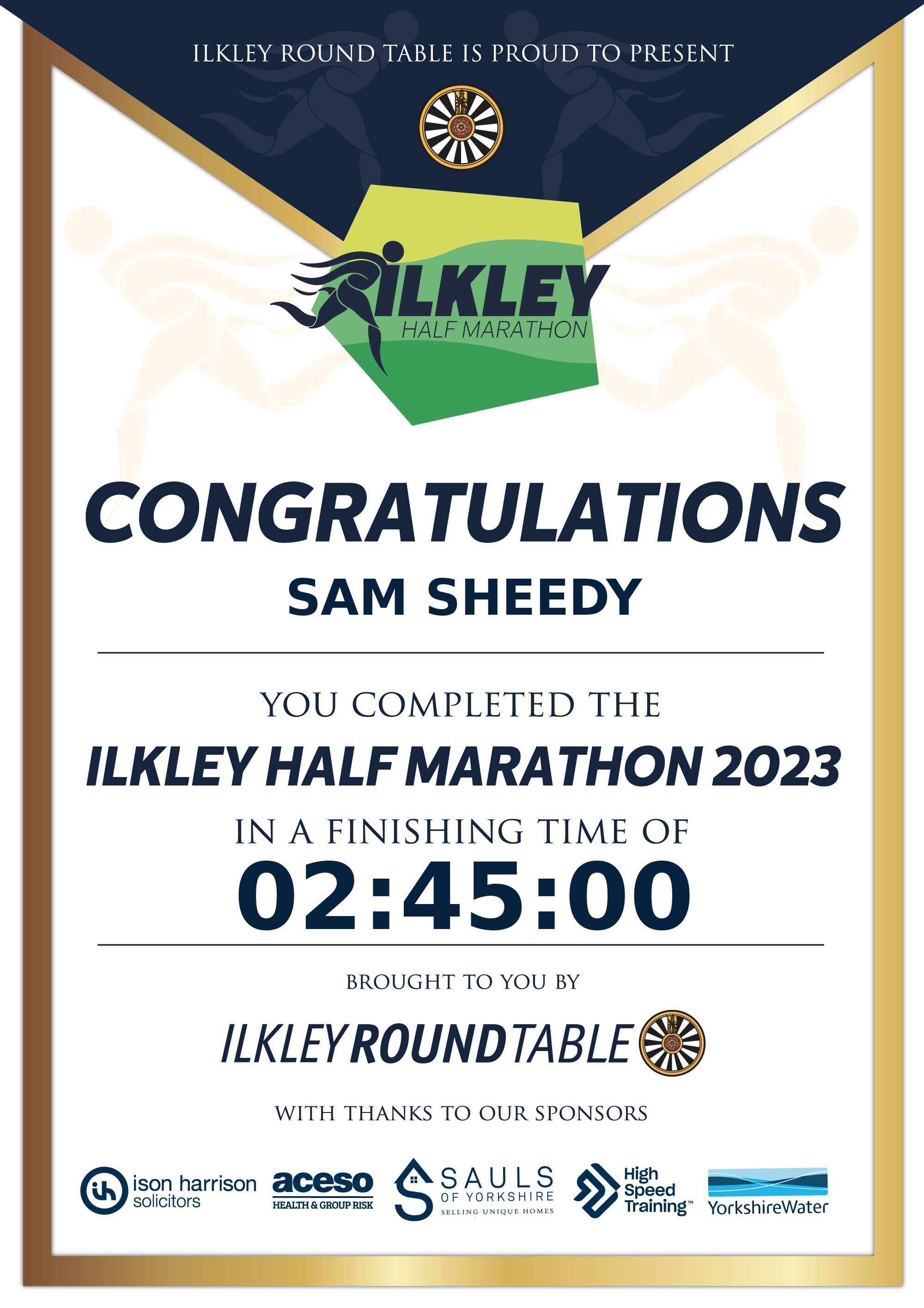 Congratulations Sam Sheedy after completing The Ilkley Half Marathon 2023 why not remember your accomplishment by purchasing our unique professionally printed, high quality 11oz race results mug. Keep that lasting memory forever. All of our race mugs mugs are personally designed and made to order and ready to deliver within 5–10 business days. Although our mugs are dishwasher safe the high temperatures of the dishwasher can fade the images. We advise handwashing only.Delivery is £3.50 Includes P&P. We only deliver within the UK