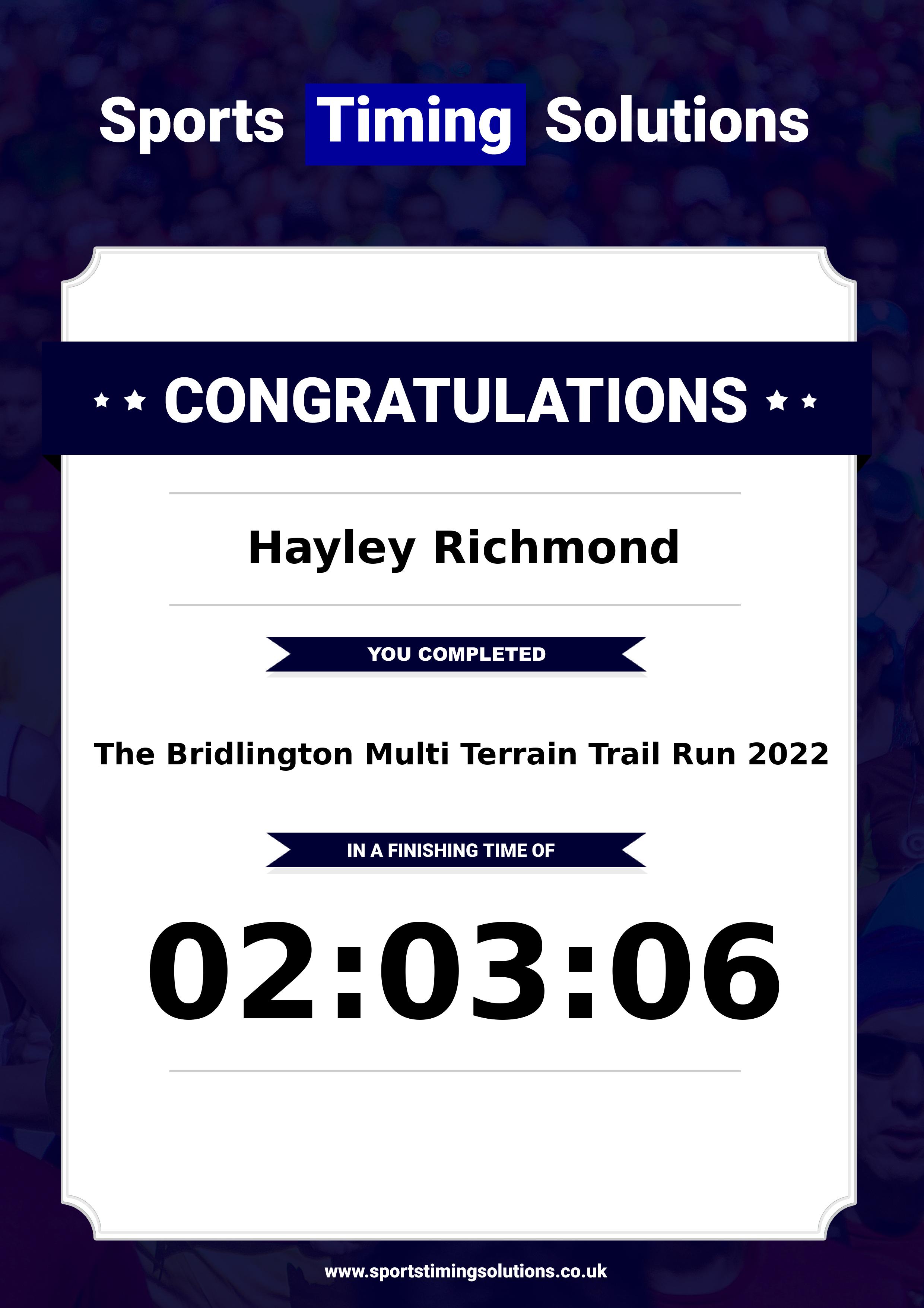 | TIME BEHIND FEMALE WINNER | +00:22:20 |