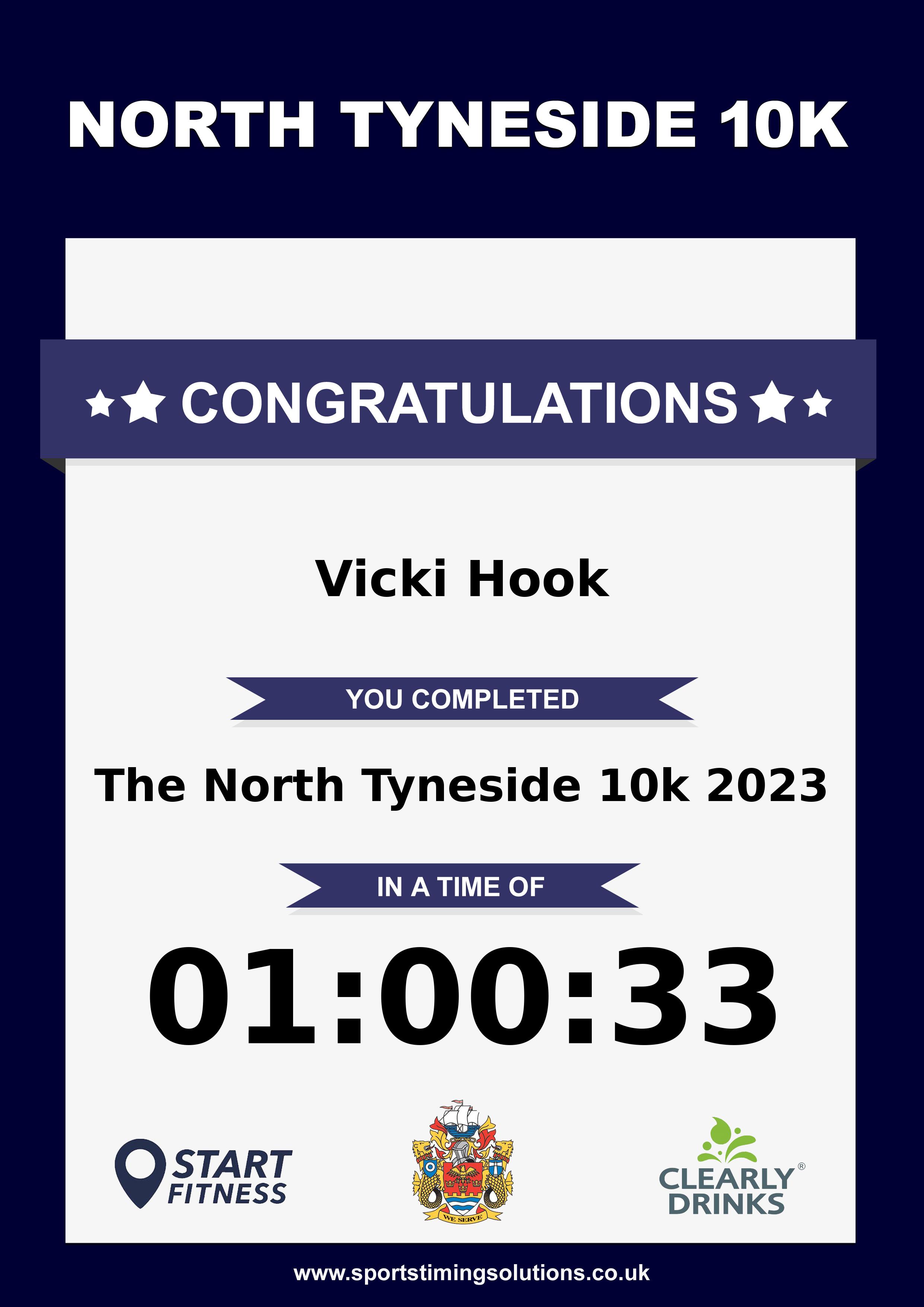 Congratulations Vicki Hook after completing The North Tyneside 10k 2023 why not remember your accomplishment by purchasing our unique professionally printed, high quality 11oz race results mug. Keep that lasting memory forever. All of our race mugs mugs are personally designed and made to order and ready to deliver within 5–10 business days. Although our mugs are dishwasher safe the high temperatures of the dishwasher can fade the images. We advise handwashing only.Delivery is £3.50 Includes P&P. We only deliver within the UK