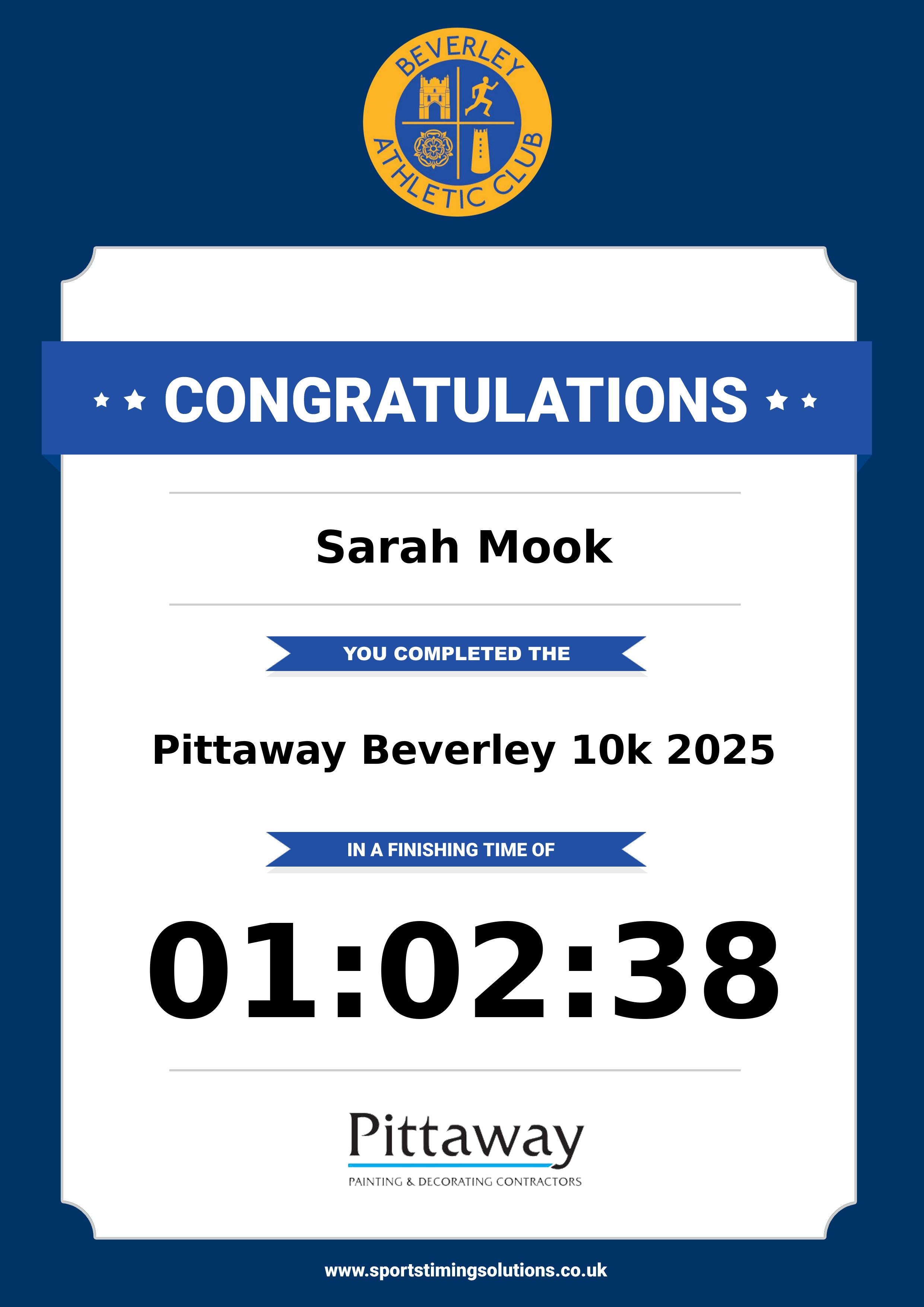 Congratulations Sarah Mook after completing Pittaway Beverley 10k 2025 why not remember your accomplishment by purchasing our unique professionally printed, high quality 11oz race results mug. Keep that lasting memory forever. All of our race mugs mugs are personally designed and made to order and ready to deliver within 5–10 business days. Although our mugs are dishwasher safe the high temperatures of the dishwasher can fade the images. We advise handwashing only.Delivery is £3.50 Includes P&P. We only deliver within the UK