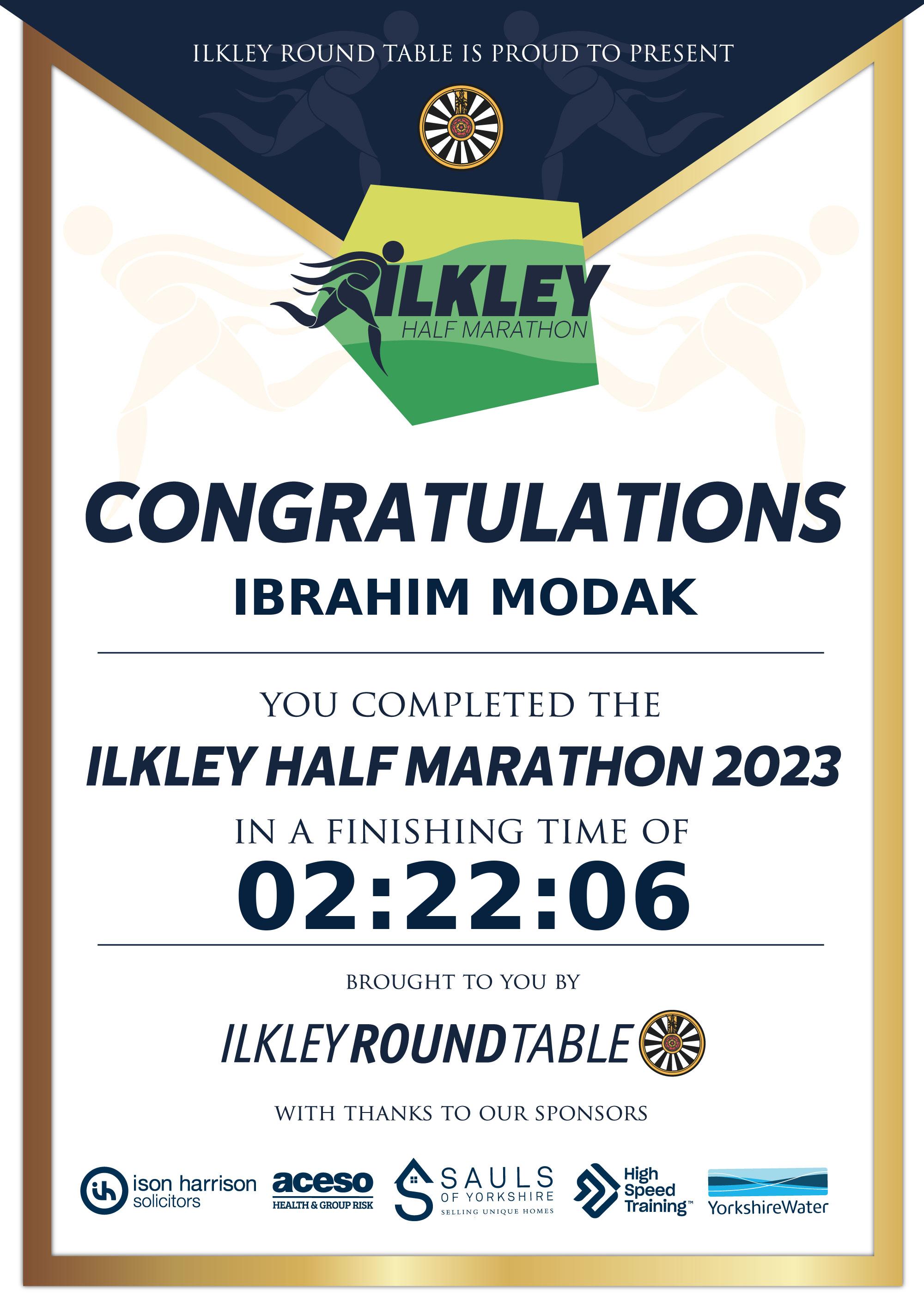 Congratulations Ibrahim Modak after completing The Ilkley Half Marathon 2023 why not remember your accomplishment by purchasing our unique professionally printed, high quality 11oz race results mug. Keep that lasting memory forever. All of our race mugs mugs are personally designed and made to order and ready to deliver within 5–10 business days. Although our mugs are dishwasher safe the high temperatures of the dishwasher can fade the images. We advise handwashing only.Delivery is £3.50 Includes P&P. We only deliver within the UK