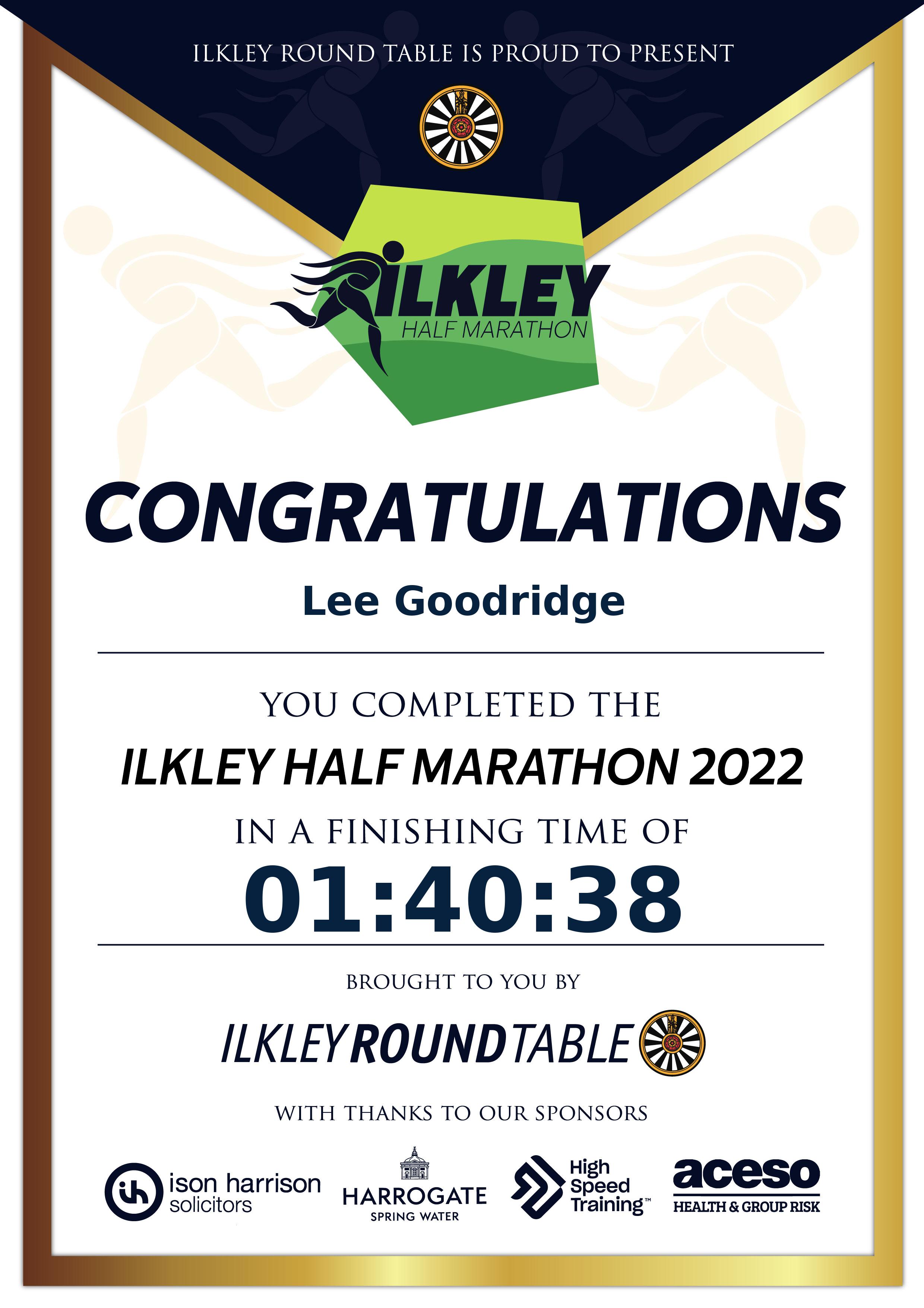Congratulations Lee Goodridge after completing The Ilkley Half Marathon 2022 why not remember your accomplishment by purchasing our unique professionally printed, high quality 11oz race results mug. Keep that lasting memory forever. All of our race mugs mugs are personally designed and made to order and ready to deliver within 5–10 business days. Although our mugs are dishwasher safe the high temperatures of the dishwasher can fade the images. We advise handwashing only.Delivery is £3.50 Includes P&P. We only deliver within the UK