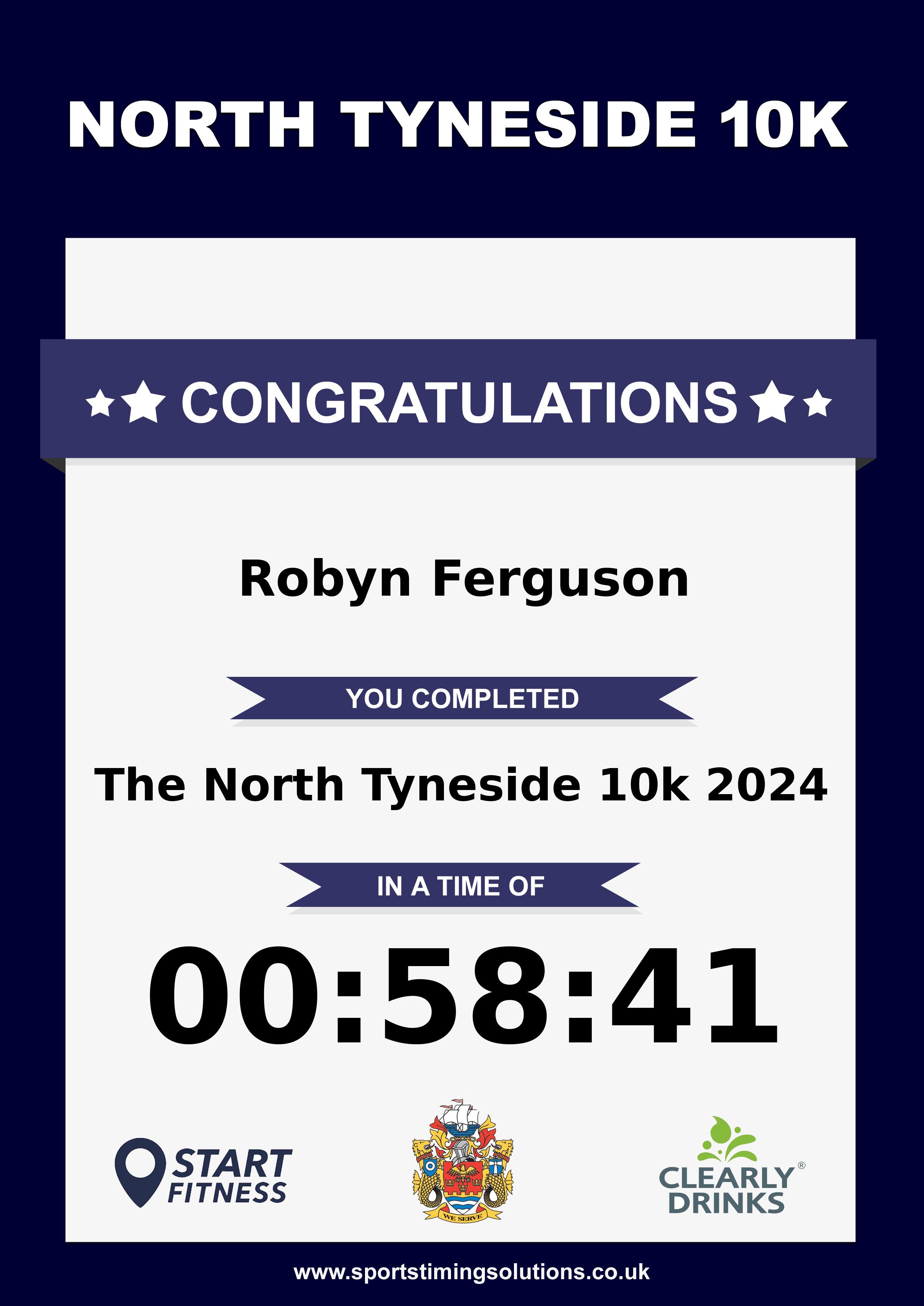 Congratulations Robyn Ferguson after completing The North Tyneside 10k 2024 why not remember your accomplishment by purchasing our unique professionally printed, high quality 11oz race results mug. Keep that lasting memory forever. All of our race mugs mugs are personally designed and made to order and ready to deliver within 5–10 business days. Although our mugs are dishwasher safe the high temperatures of the dishwasher can fade the images. We advise handwashing only.Delivery is £3.50 Includes P&P. We only deliver within the UK